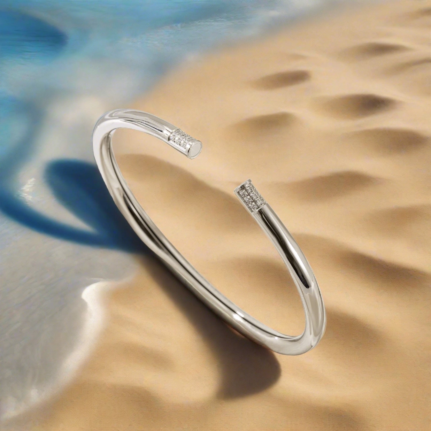 Introducing our Bangle Fancy Cuff - a stunning accessory featuring a luxurious design and sparkling zirconia accents. The perfect statement piece to elevate any outfit. Created by industry experts with superior craftsmanship and attention to detail. Add a touch of elegance and sophistication to your wardrobe with our Bangle Fancy Cuff.