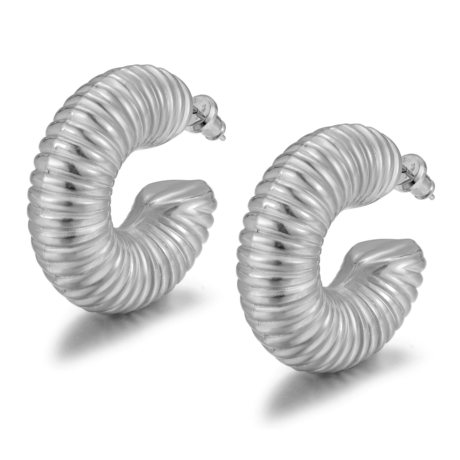 Get ready to make a statement with our Earring Chunky Hoop! These hoops feature a bold and trendy chunky ribbed design, perfect for the fashion-forward woman . Elevate any outfit with these must-have earrings! 18k high quality gold plated steel.
