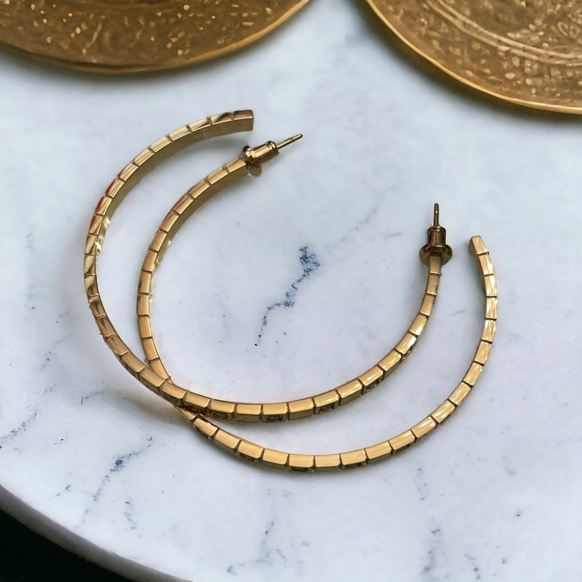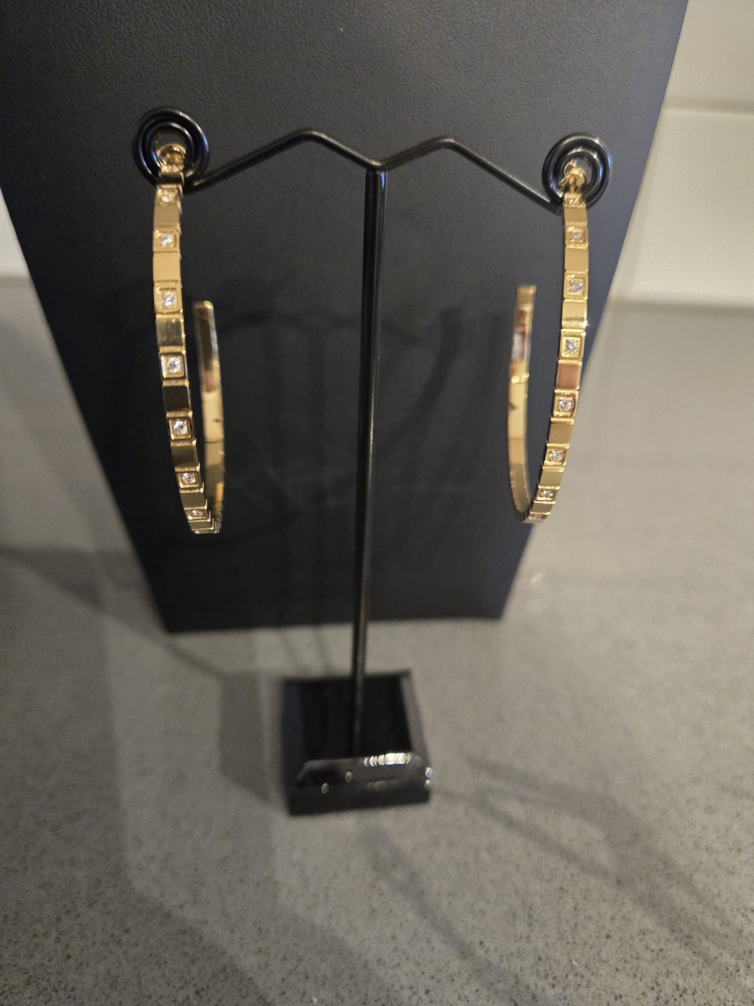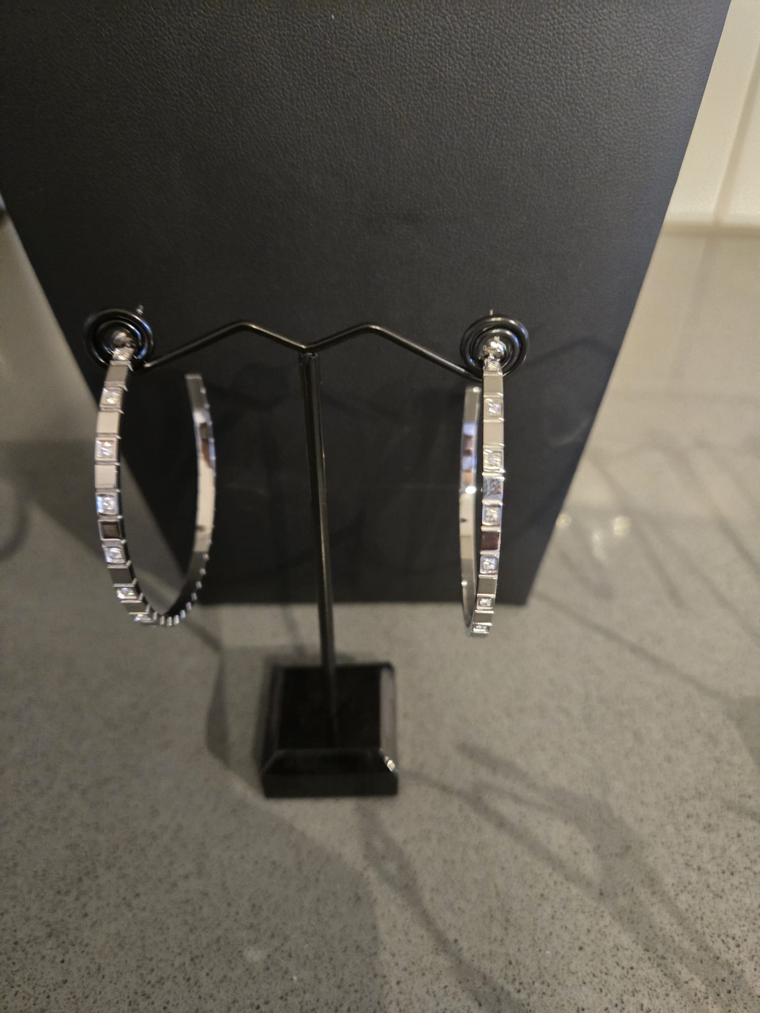 A timeless and luxurious high-quality steel earring adorned with channel-set zirconia stones. Elevate any outfit with this elegant piece, exuding exclusivity and refined taste. The perfect addition to your collection of premium accessories.