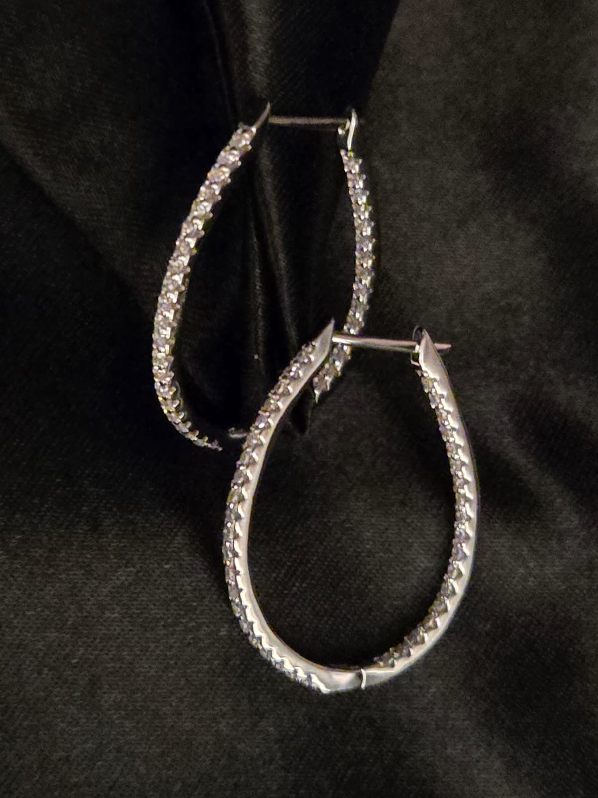 Discover the everyday luxury of our Hoop Me Earrings . These inside out pave sterling silver earrings provide a timeless and elegant touch to any outfit. With expert craftsmanship and attention to detail, these earrings are the perfect addition to your wardrobe. Add a touch of sparkle to your everyday look.