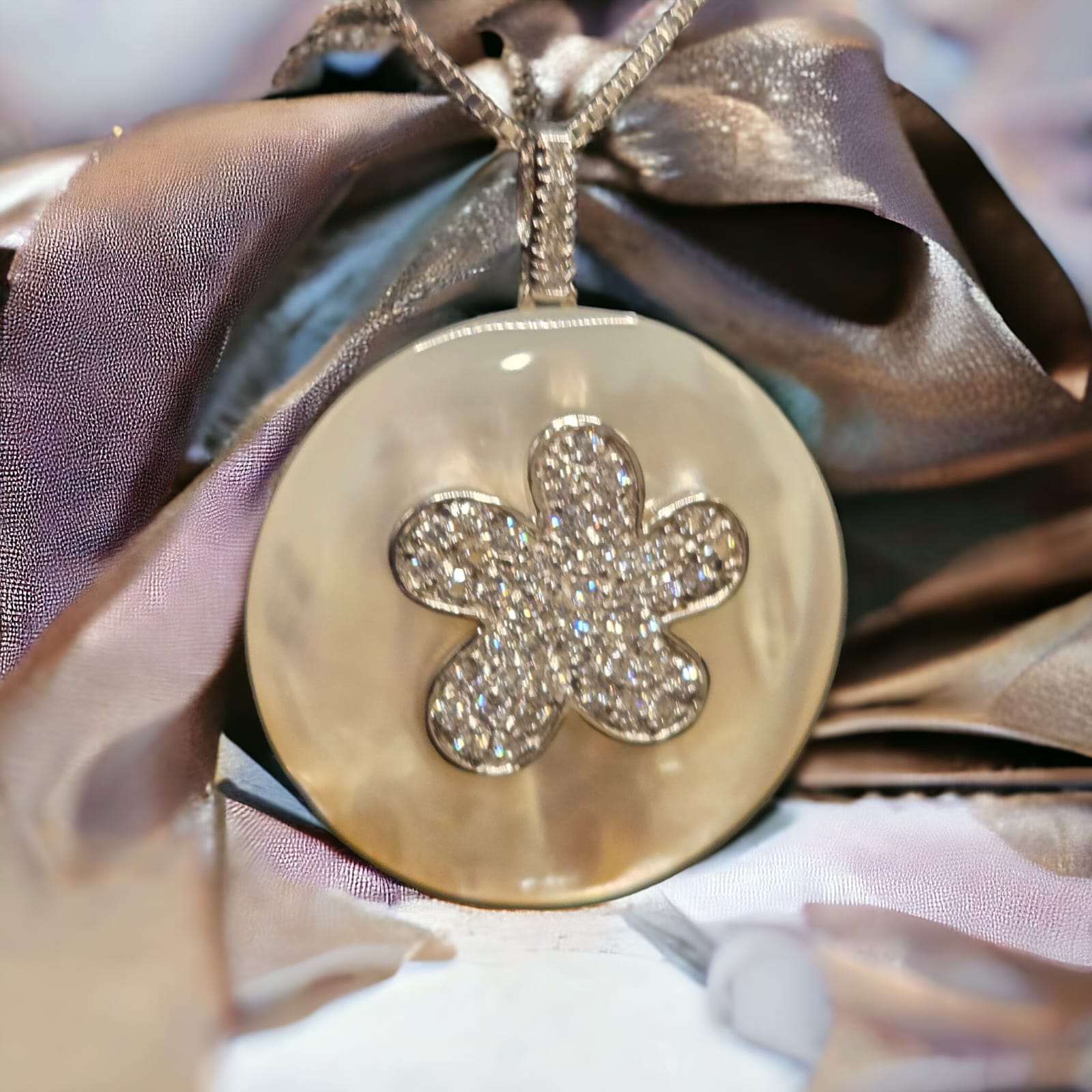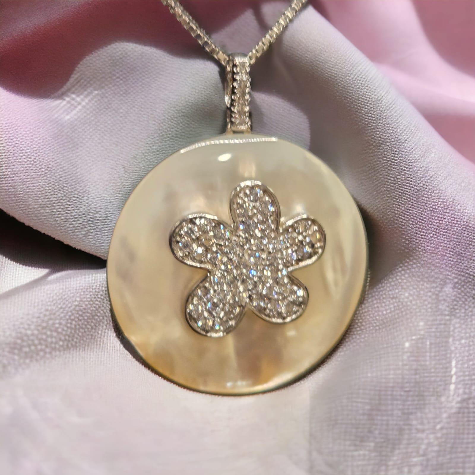 This genuine Mother Of Pearl 'ALLURE' set features a stunning necklace and earrings, crafted with sterling silver, rhodium finish that showcases the beauty of mother of pearl design . Perfect for any special woman, its allure will captivate and enhance any outfit.