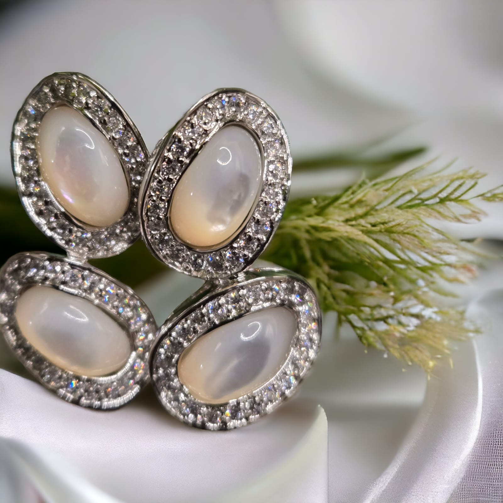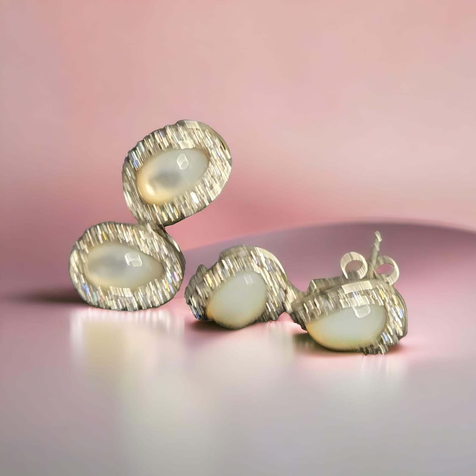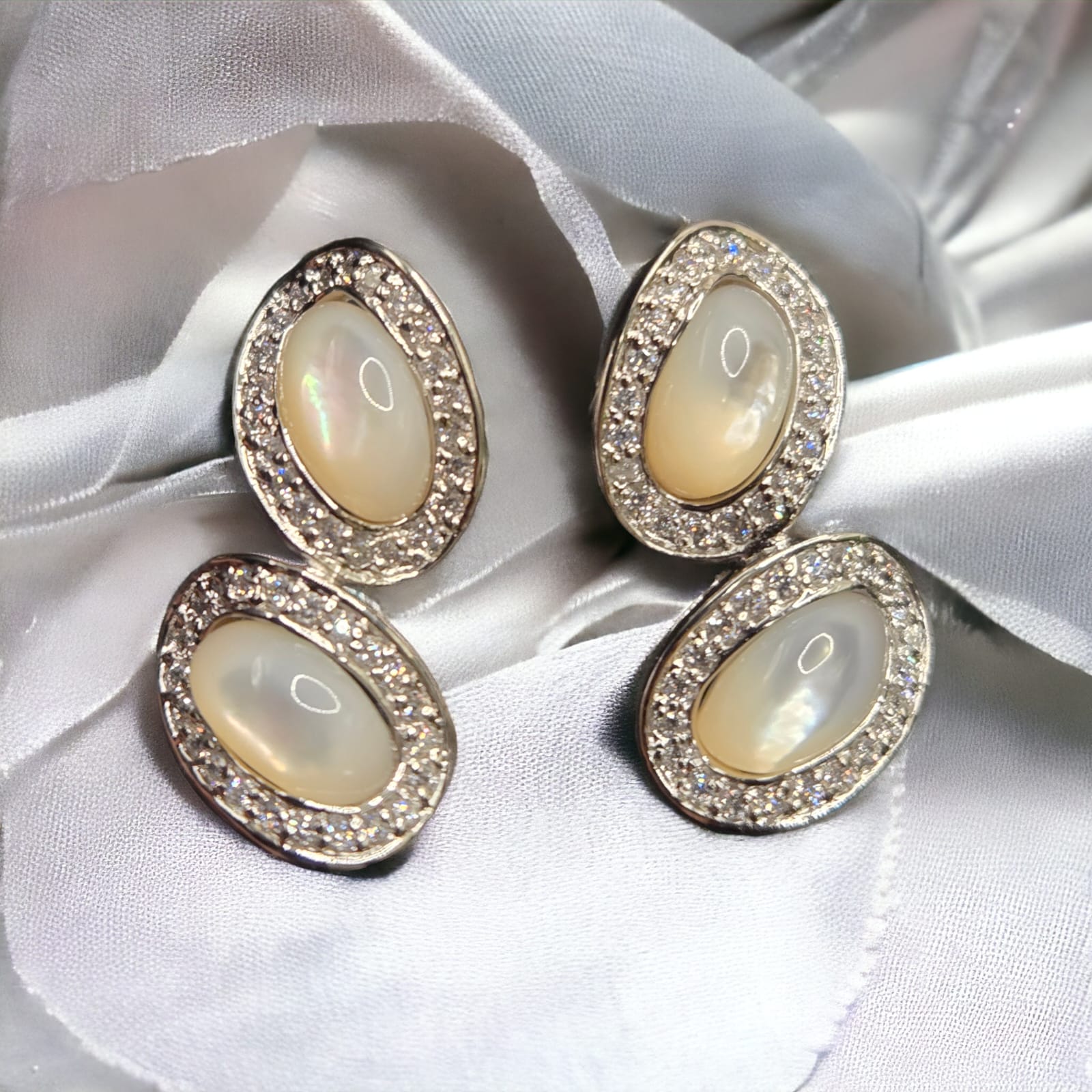 Discover the epitome of elegance with our genuine Mother of Pearl "INDULGE" earrings. Each pair is delicately crafted with genuine mother of pearl and set in sterling silver, rhodium finish. Indulge in luxury with these exquisite earrings.