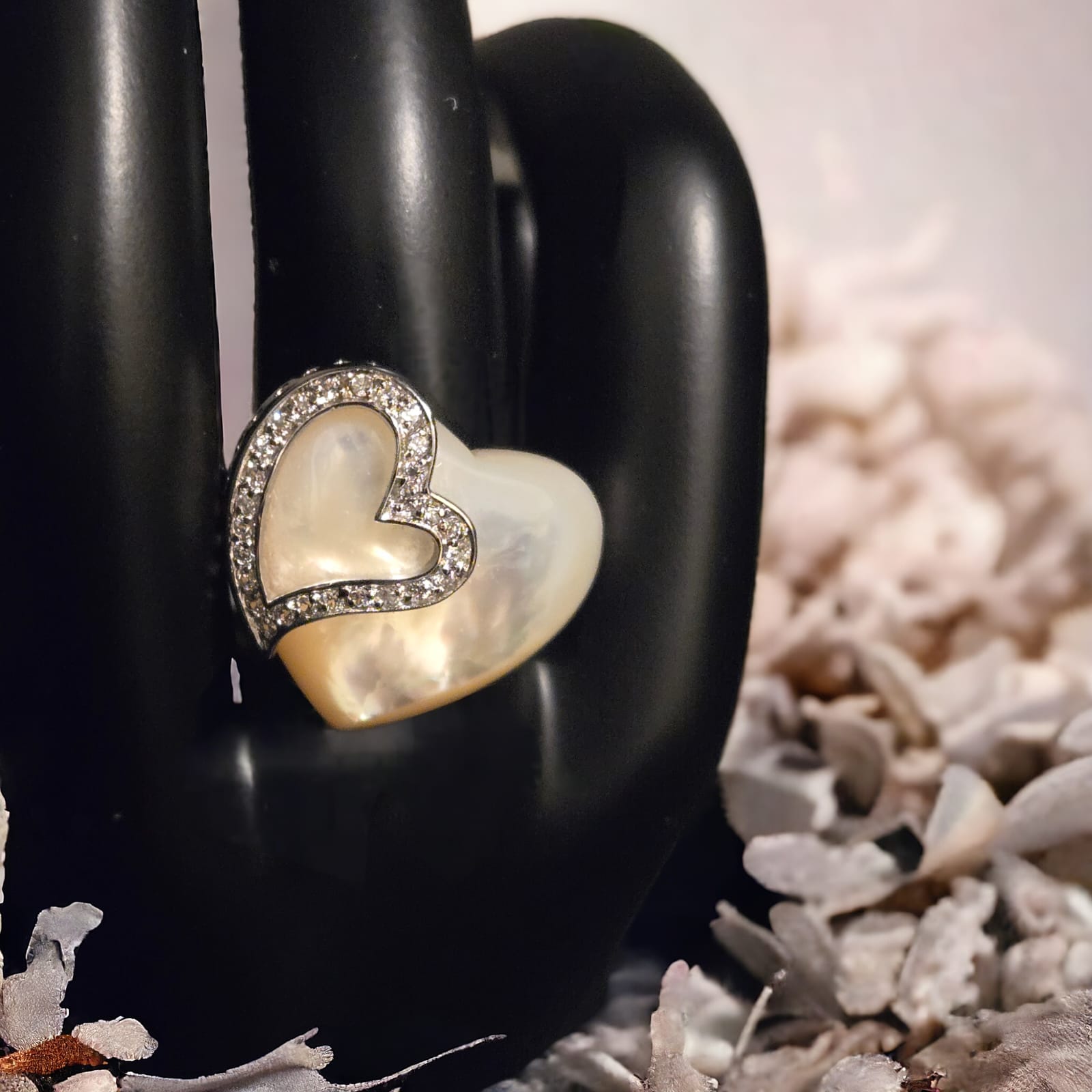 Mother Of Pearl Ring "HEARTS ON PEARL"