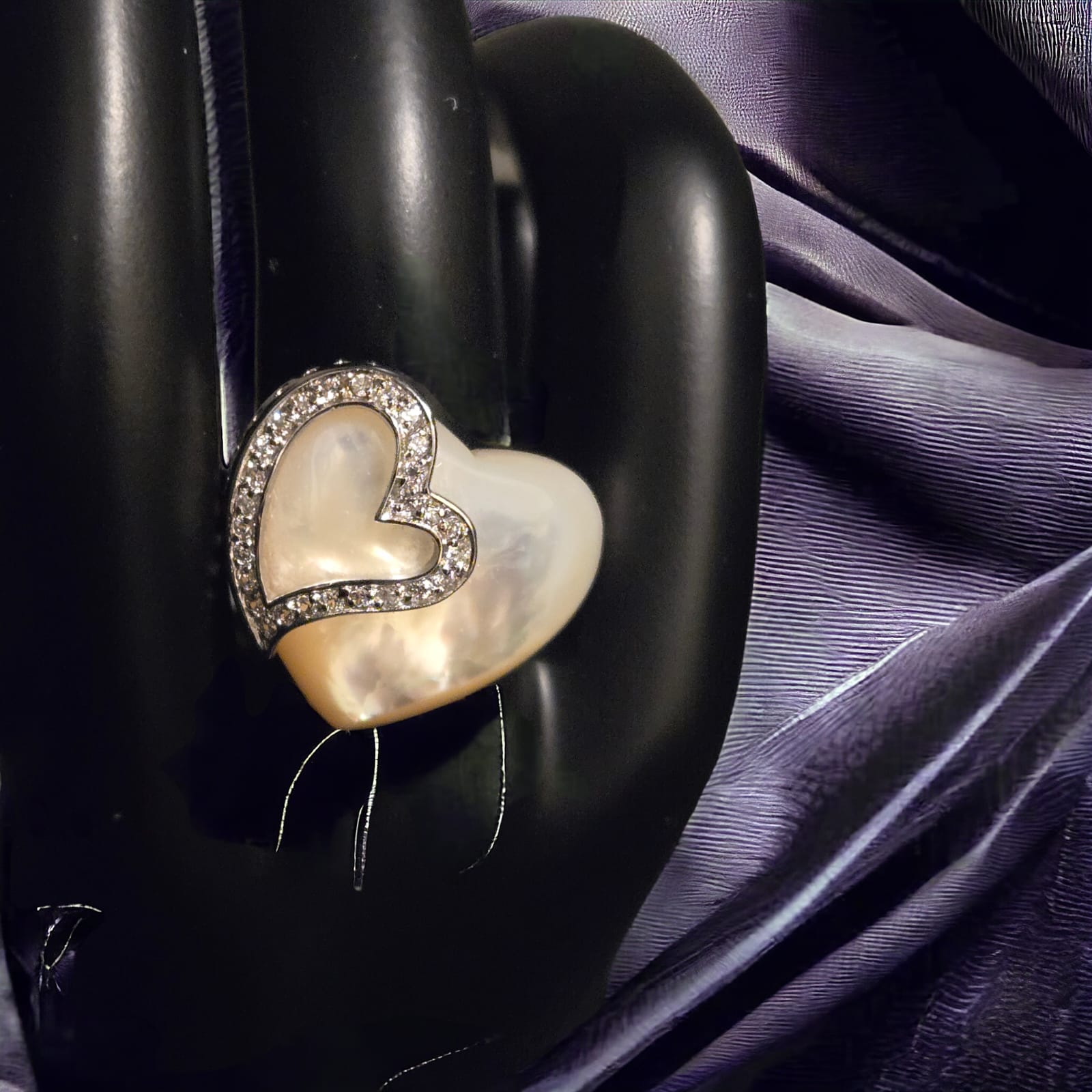 Elevate any outfit with our "HEARTS ON PEARL" genuine mother of pearl ring set in sterling silver, rhodium finish . The iridescent pearl catches the light, making your fingers radiate with elegance. This timeless piece is perfect for adding a touch of sophistication to any look.