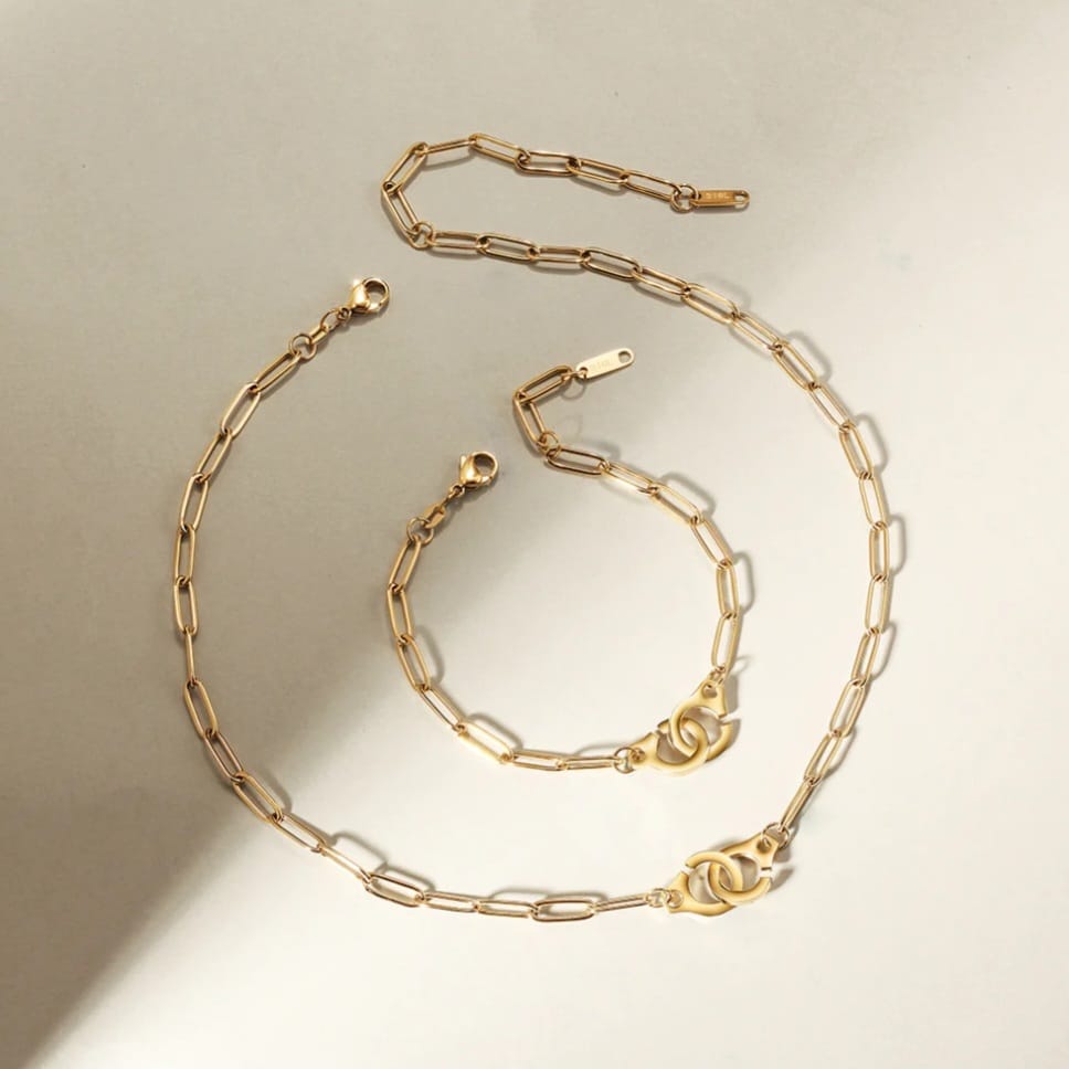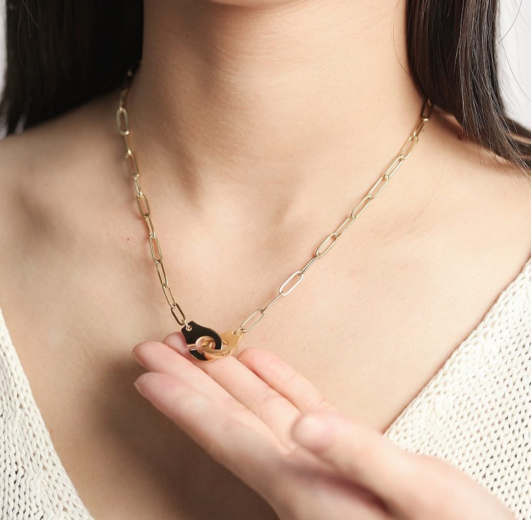 With its modern and double hook feature, this sophisticated piece adds a touch of fun to any outfit. Perfect for any occasion, it's a must-have for those who value elegance and luxury in their accessories. 18k gold plated high quality steel