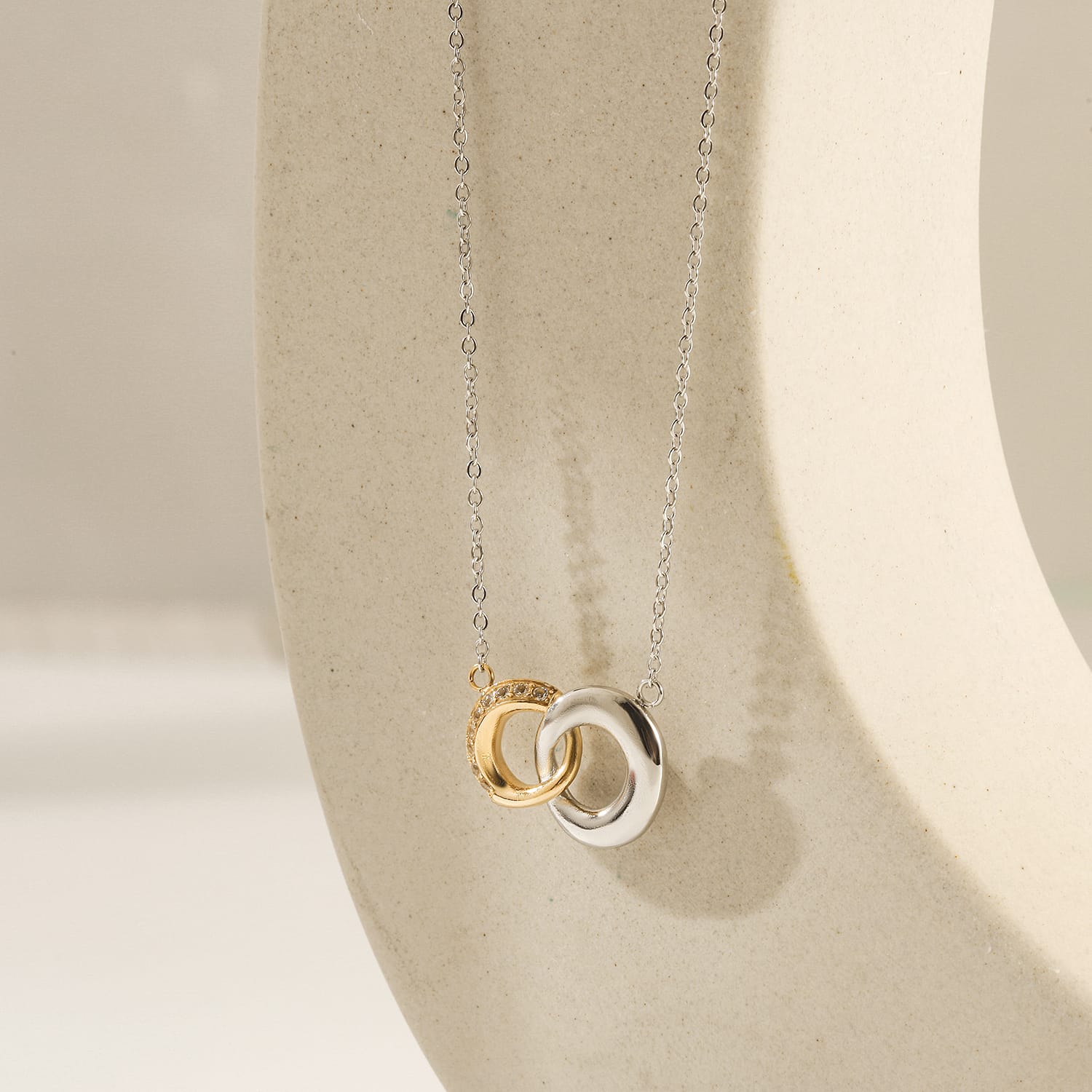 Introducing the Love & Unity Necklace, a symbol of unbreakable bond and inner strength. Crafted with steel and 18k gold plating, this circle necklace exudes luxury and style. Show your love and support with this elegant and tasteful piece.