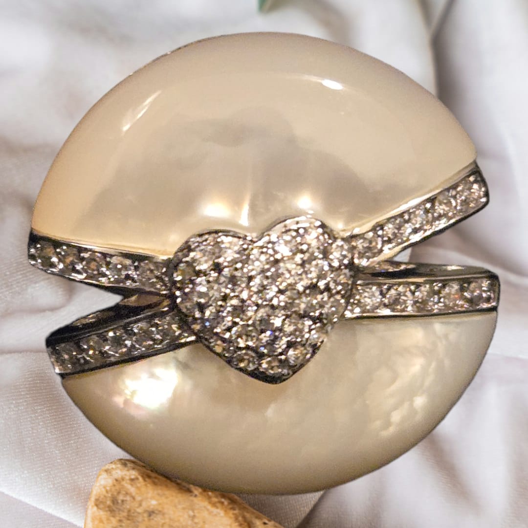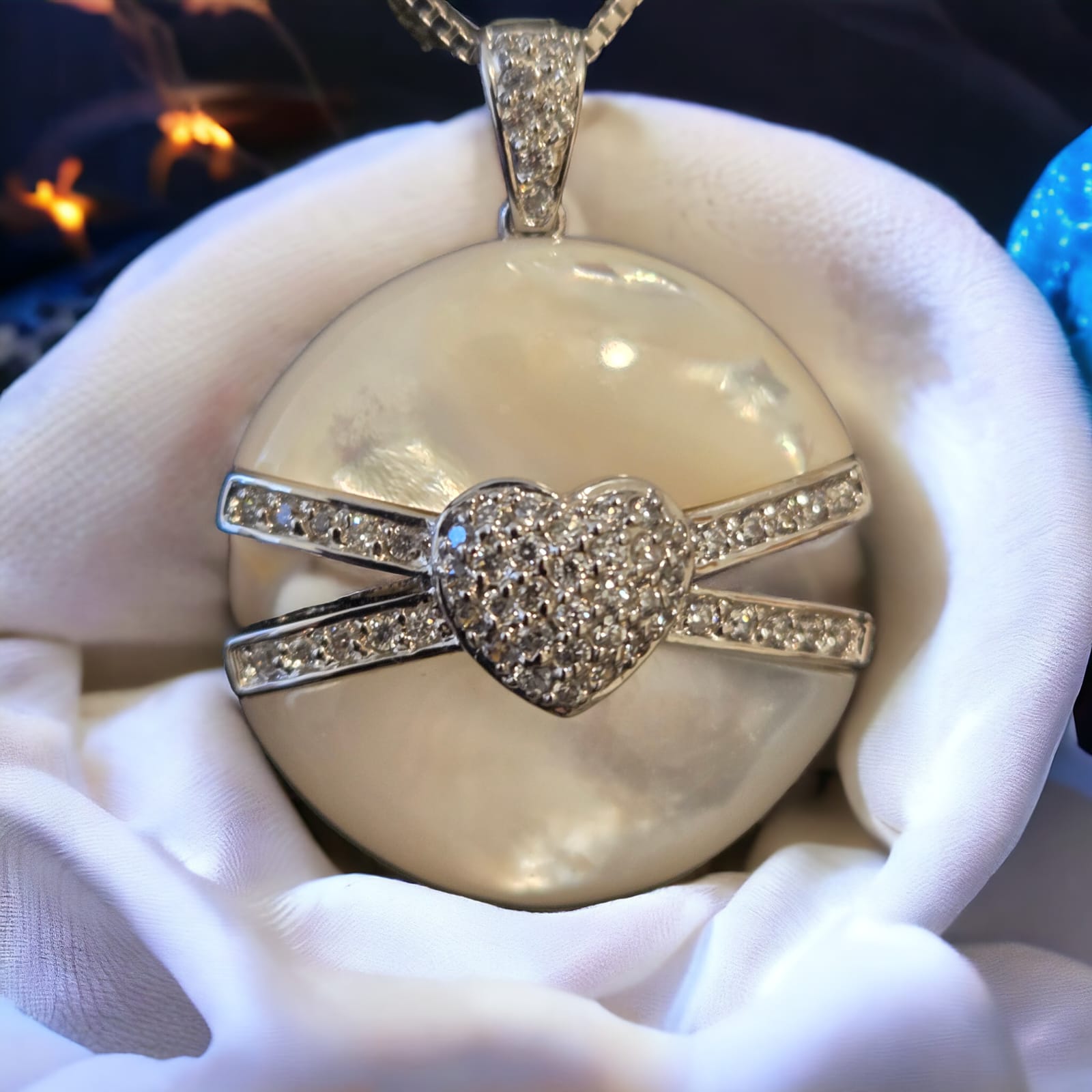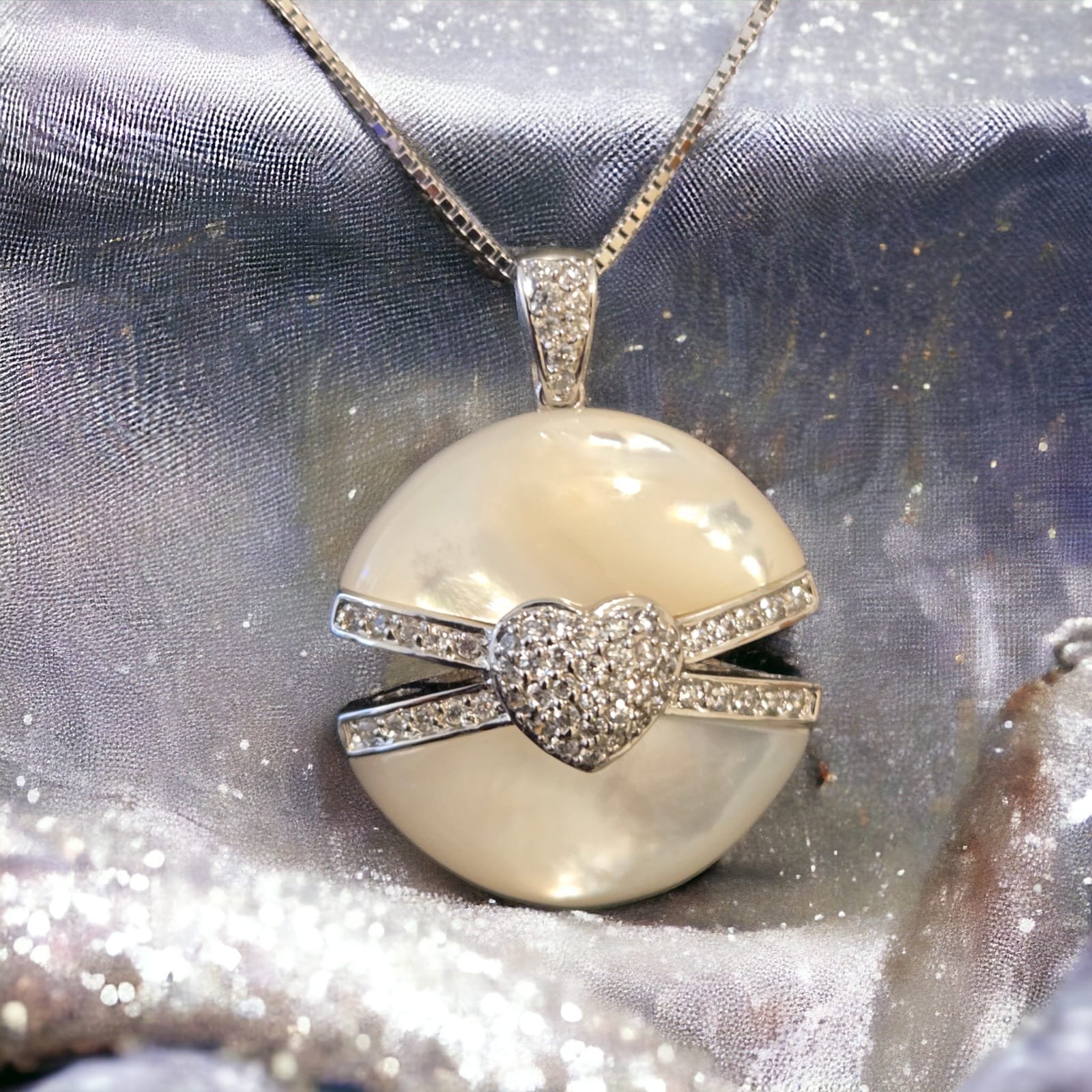 This luxurious necklace features a stunning genuine mother of pearl heart pendant, perfect for the sophisticated woman. Elevate any outfit with this elegant accessory. Crafted with sterling silver, rhodium finish . This necklace is a must-have for any jewelry collection.