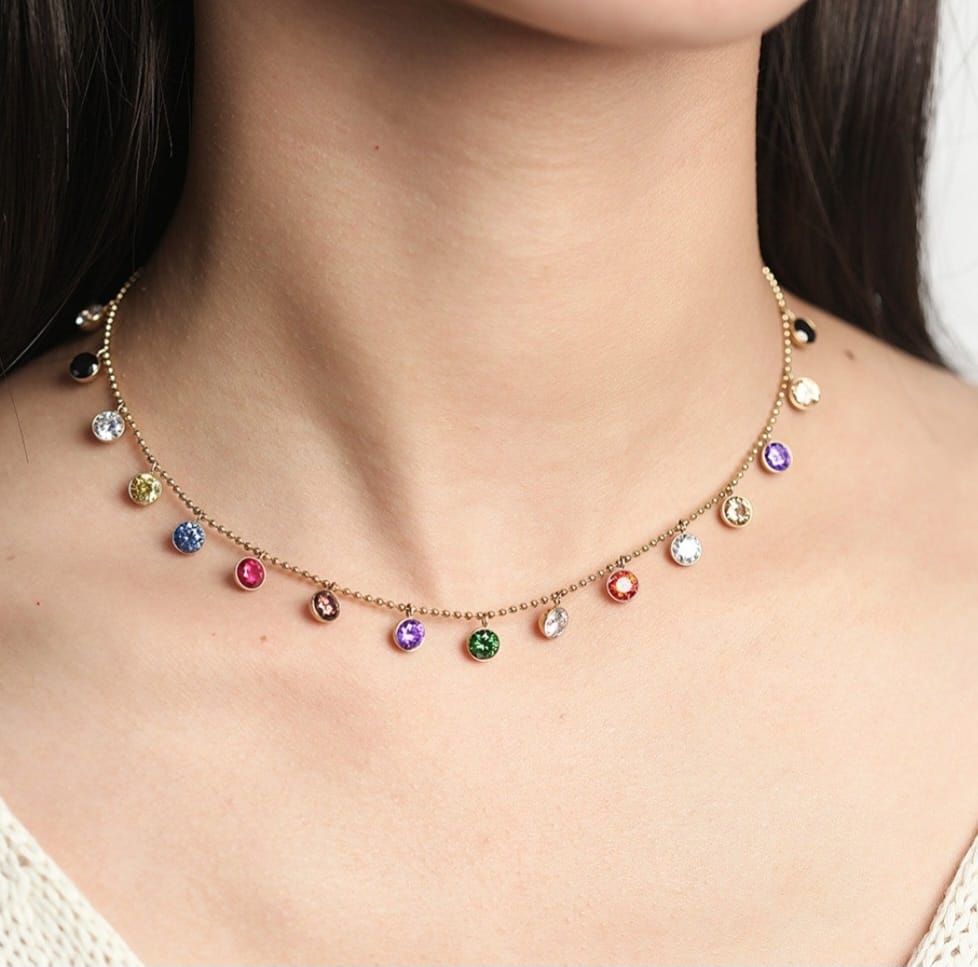 This delicate Silver Cute multicolor necklace exudes a timeless elegance. Its intricate design and high-quality silver material make it a perfect addition to any outfit, elevating your style to the next level. flexible and funky. a fun piece